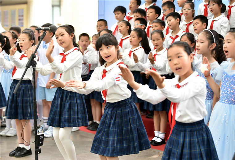 参加“10岁成长礼”社会实践的小学生们,组成三支“红领巾”文艺志愿服务队,分别走进社区广场、儿童福利院、养老院,开展丰富多彩的文艺志愿服务活动,庆祝自己10岁生日的到来。(扬州市新闻传媒中心记者 庄文斌 摄影报道)