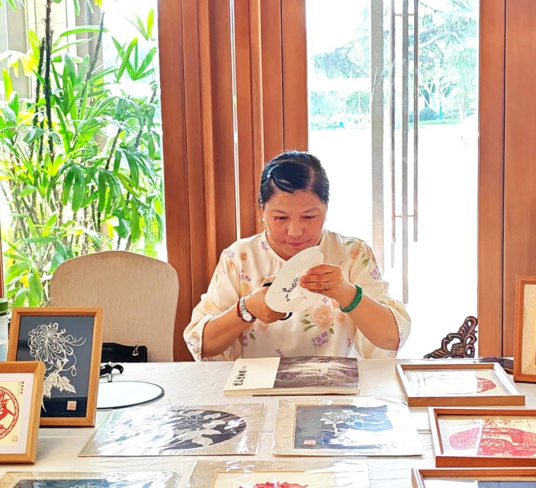 赵红妹展示扬州剪纸技艺。