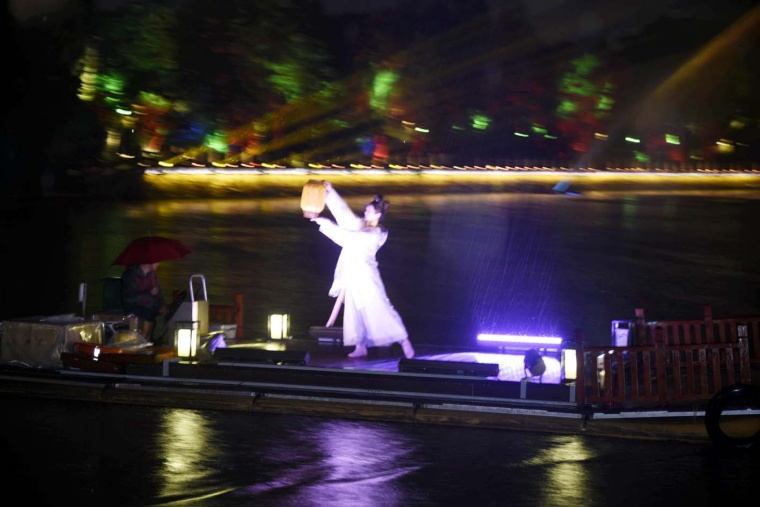 游船行至南门遗址水域,在“绵长好运”的高潮部分缓缓落幕。不少嘉宾流连忘返,还沉浸在“船在画中游,人在景中戏”的奇妙体验中。